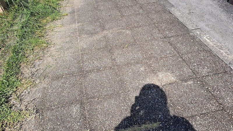 写真ではわかりにくいですが、バッタがいたので寄ってみたい56歳の影。