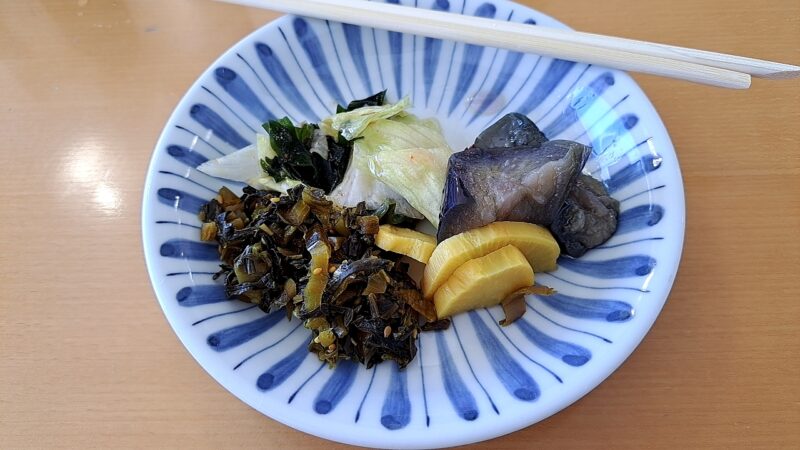 ということで、夫は注文した品が来る前にあれこれ運んできて食べていました。私はさっぱりするもの系で。漬物とかサラダとか。ソーメンもありました。
