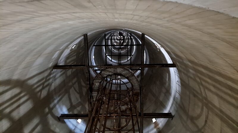 らせん階段のように見えなくもない? 下からのぞいた内部。