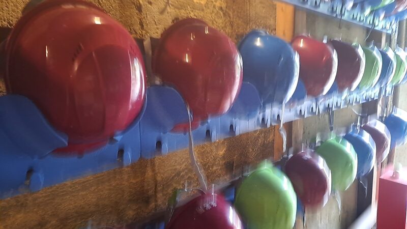 なるべくヘルメット着用。でも、ヘルメットが傷んでいるものもあり(あごひも部分とか)。