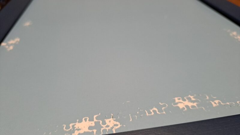 枠はケチって、前に作ったパズルを外し、再利用。のり付けされていたのをはがしたので見た目はアレですが、いいのさ。