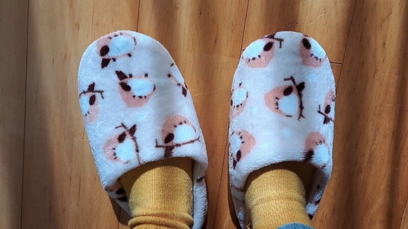 今日はやっと買った。スリッパを、ダイソーで。おばちゃんだけど、家の中ではかわいいものを使いたいのさ。