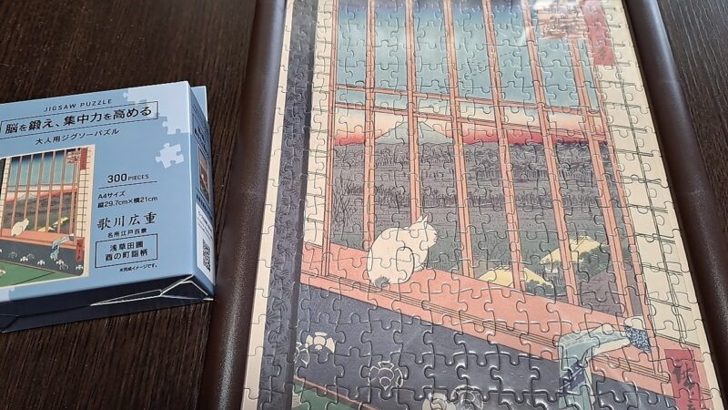 仕事が落ち着いてから組み立てようと思ったけど、ながら見テレビのときに始めてしまい、できた、ジグソーパズル。