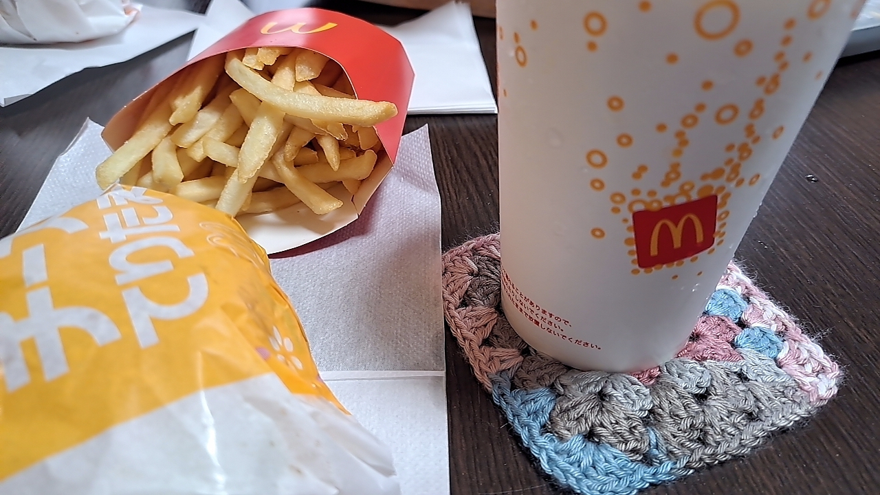 ずっとコーヒーはホットを飲んでいたのだけど、昨日、家族が買ってきてくれたアイスコーヒーがおいしかった(おいしい季節になった)ので、セットのドリンクはアイスコーヒー。昼間はだいぶぬくいね。
